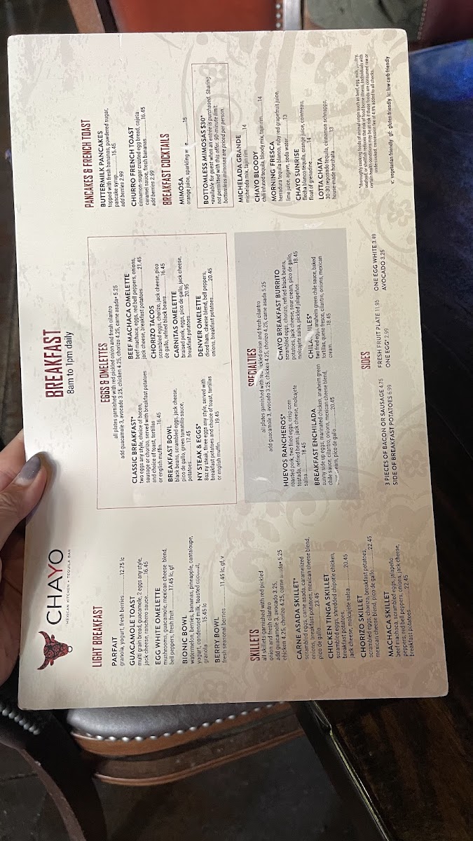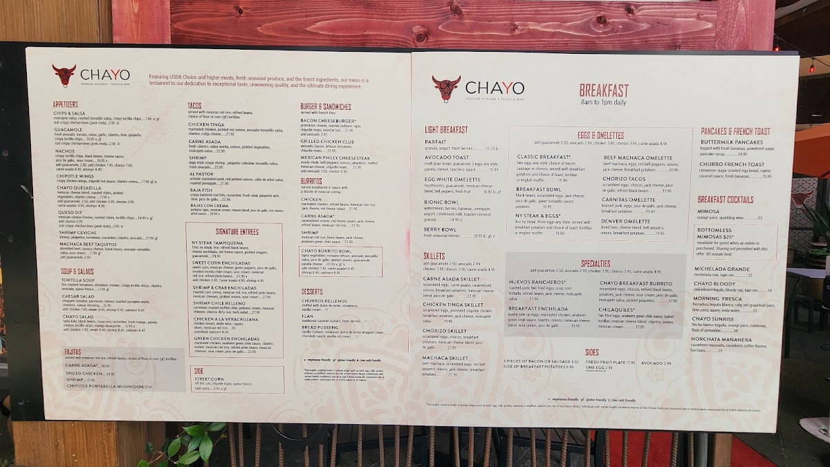 Chayo specializes in the rich, bold essence of Mexican cuisine, and their specialties illustrate this beautifully. Picture starting your day with Huevos Rancheros, a delightful composition of roasted pork, two fried eggs perched on a crisp corn tostada, complemented by refried beans, jack cheese, and a flavorful molcajete salsa. For brunch enthusiasts, the Chayo Breakfast Burrito, brimming with scrambled eggs, savory chorizo, and refried black beans, is a must-try.